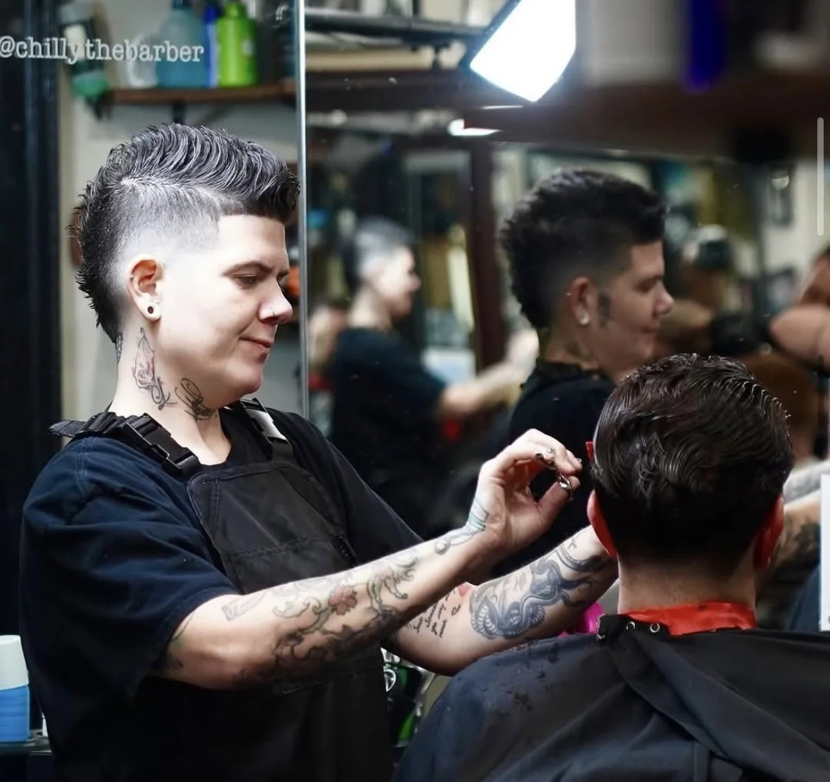 Chillythebarber has been a Master barber in Boston for 11 years. Specializing in all hairstyles and textures. She is surgical with the straight razor and shears leaving clients with a prestige haircut.